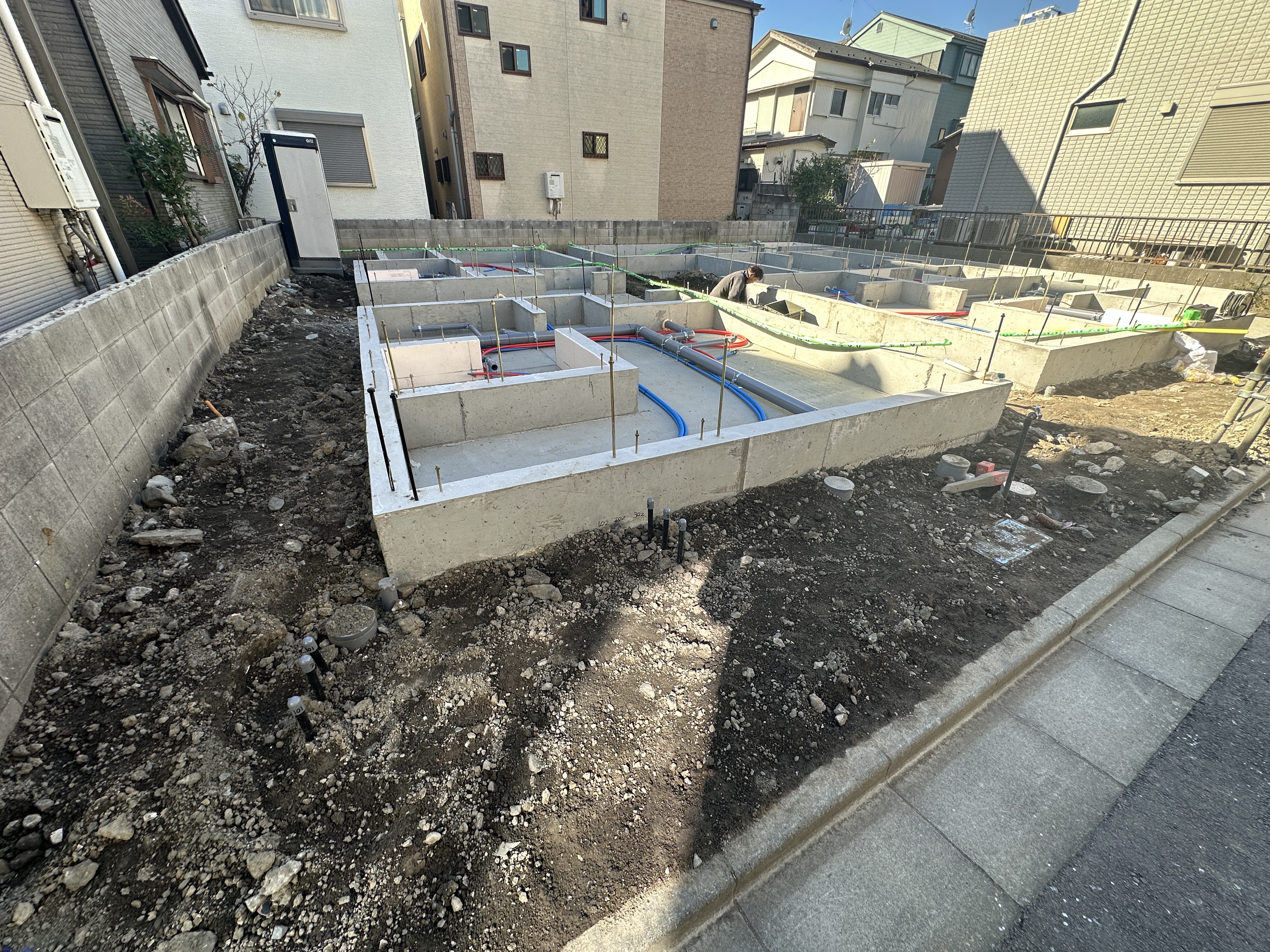 2025年12月末 基礎工事いよいよ本物件は、両棟ともに基礎工事の工程に入りました