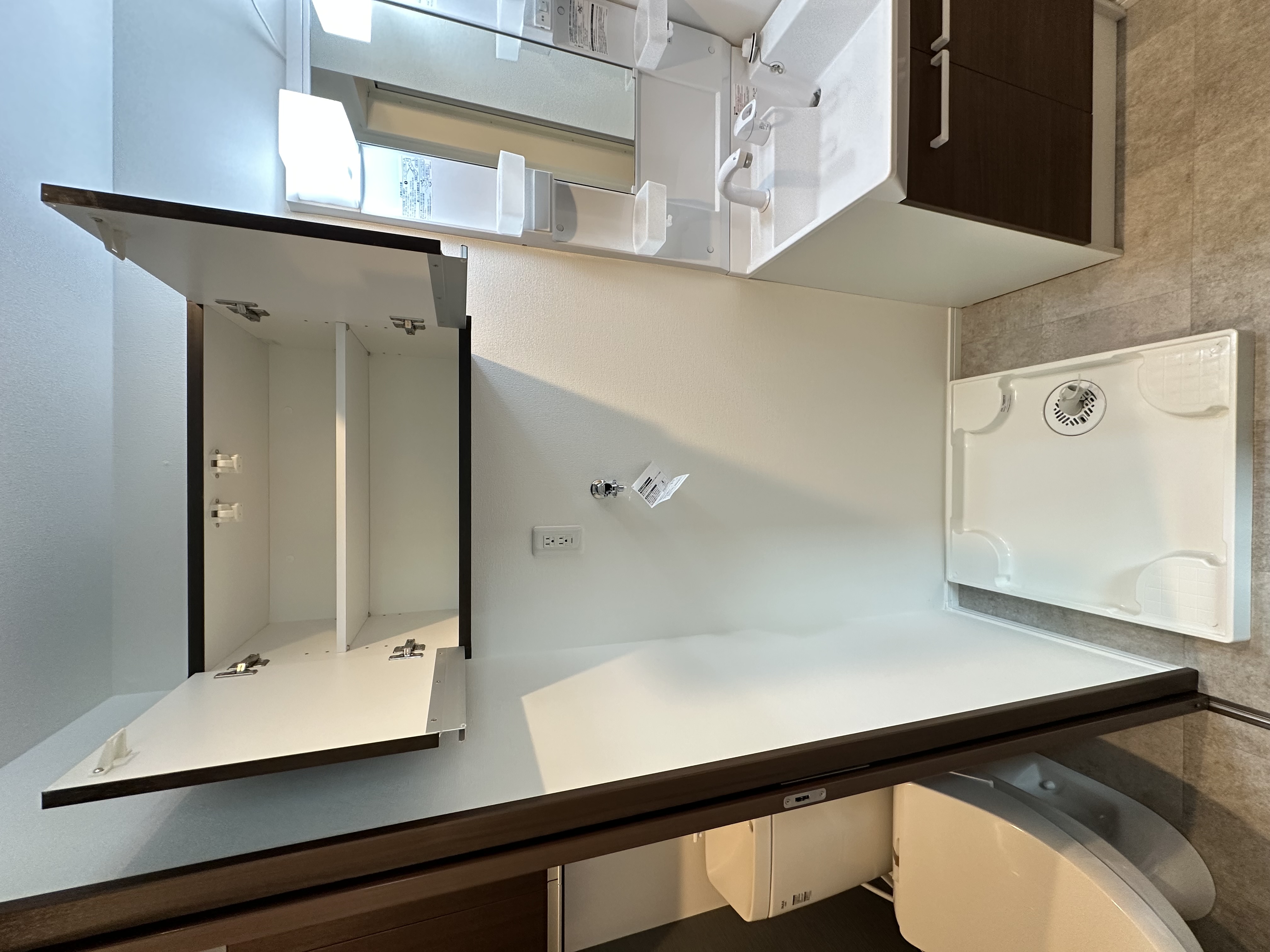 トイレ・洗面といったサニタリースペースは、専有面積の中ではコンパクトになりがちな一方で、入居者の評価に大きく影響するポイントです。トイレ上部には収納を設けることで、消耗品や清掃用品を効率的に集約。