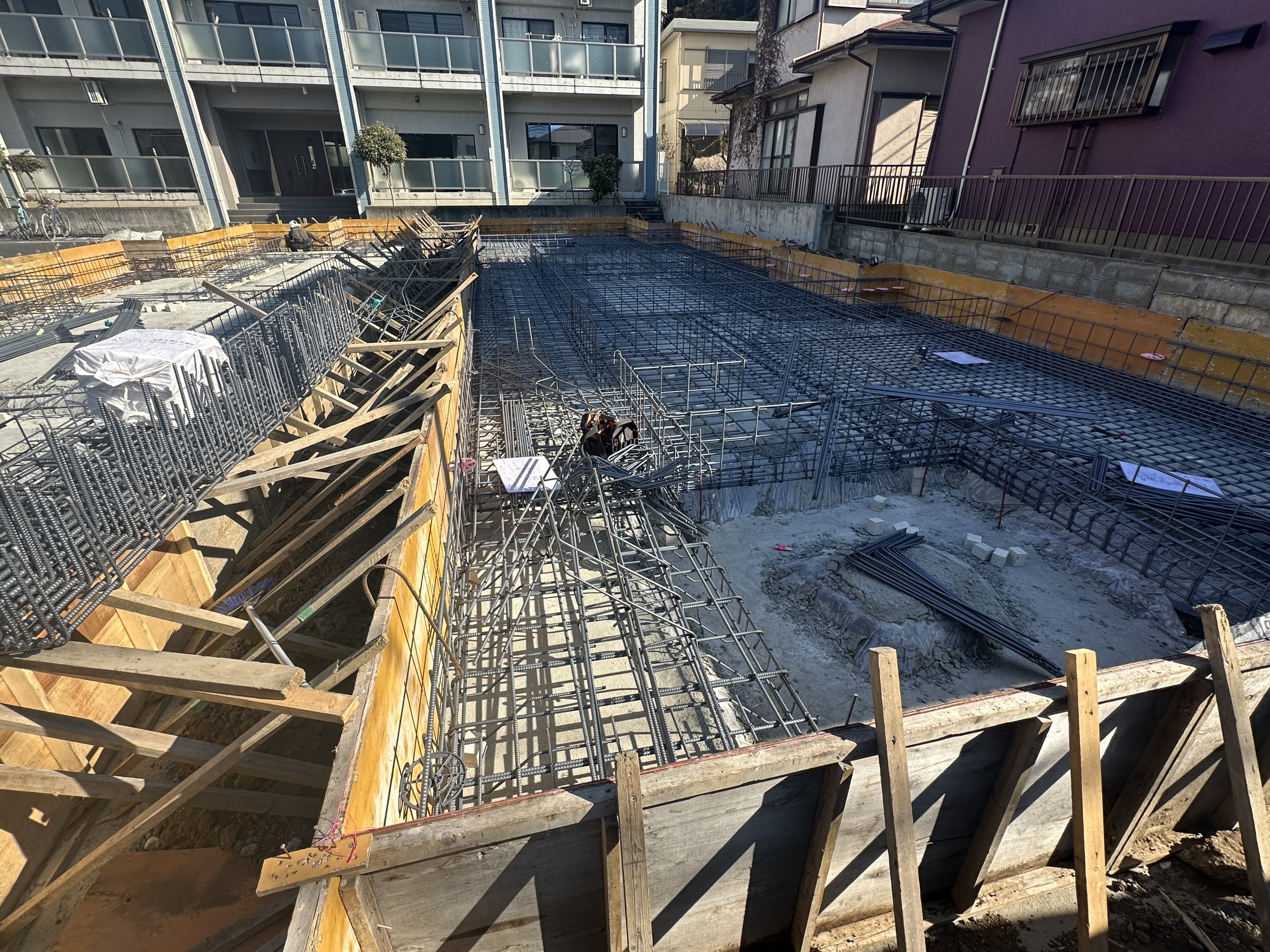 現在は、鉄筋を組み、型枠を設置する作業が進められており、少しずつ建物の輪郭が見え始めています。