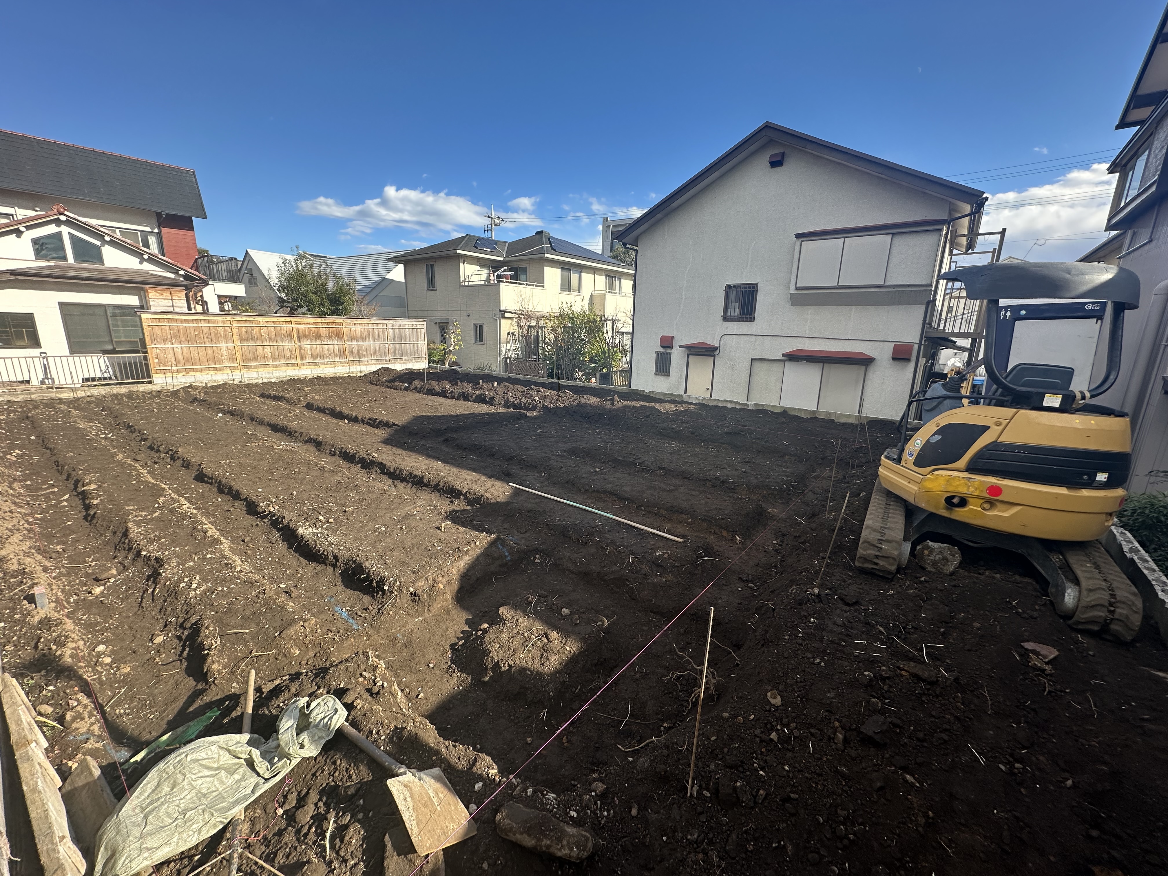 届いた写真は、建物の形に合わせて土を掘削・整形している工程の様子です📷