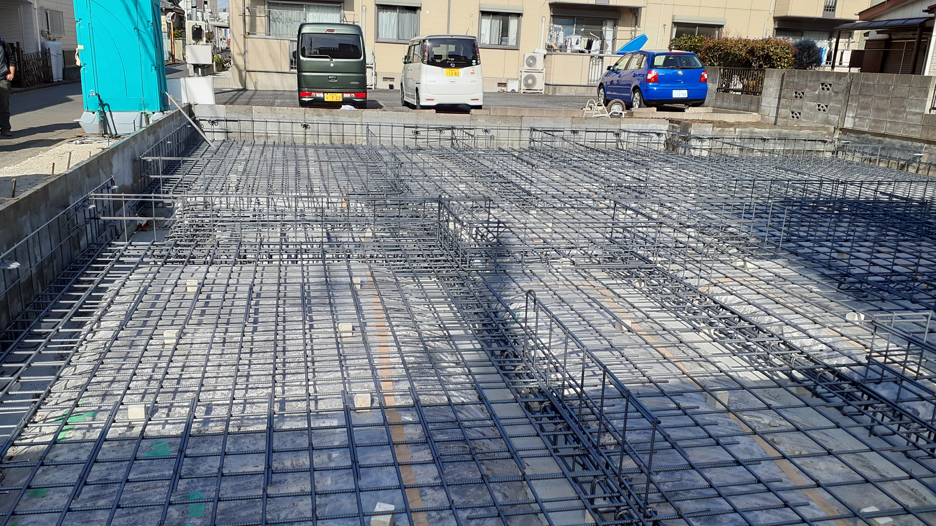 先月までは更地だった場所に、あっという間に基礎が出来上がり、